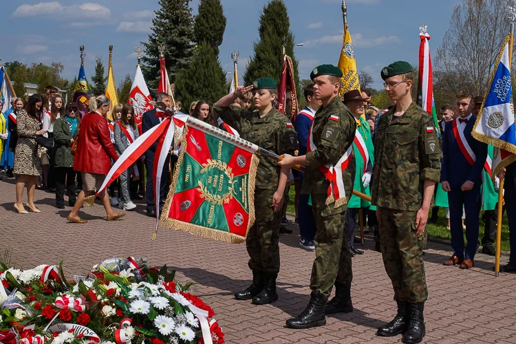 Przedstawiciele władz samorządowych miasta, powiatu i gminy, służb mundurowych, instytucji oraz szkół i stowarzyszeń z naszego miasta złożyły biało-czerwone wiązanki kwiatów pod tablicą pamiątkową, znajdującą się przed świątynią. Następnie, w samo południe, licznie zebrani udali się do kościoła, gdzie odprawiona została msza św. w intencji Ojczyzny.