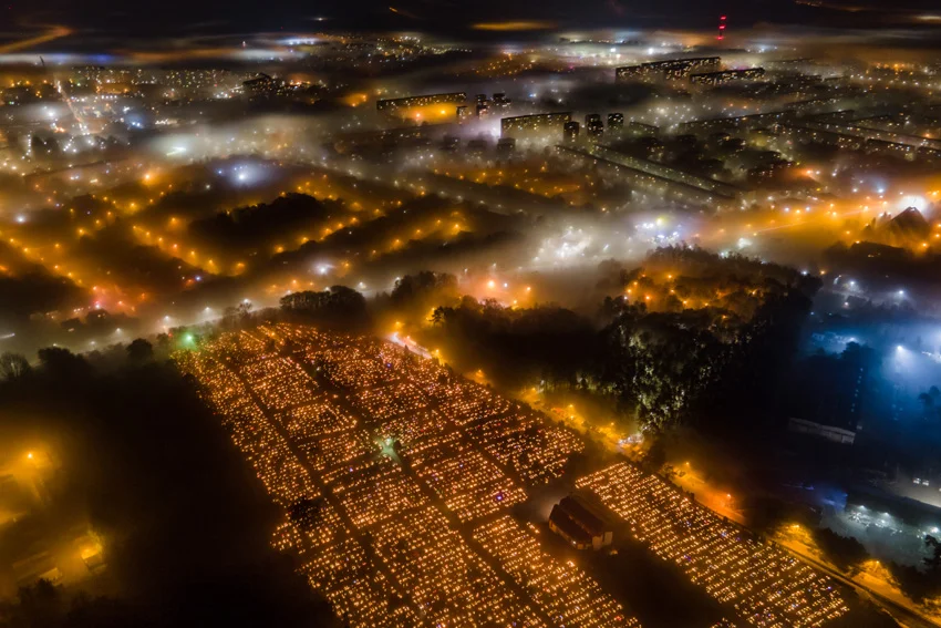 Migoczące płomienie świec zarysowują w mroku detale nagrobków. Cienie krzyży i posągów, niewyraźne kształty liter i symboli zdają się przemawiać w cmentarnej ciszy wyjątkowo wyraźnie. To sprawia, że niektórzy właśnie wieczorem postanawiają przespacerować się alejami nekropolii, aby pogrążyć się w zadumie.