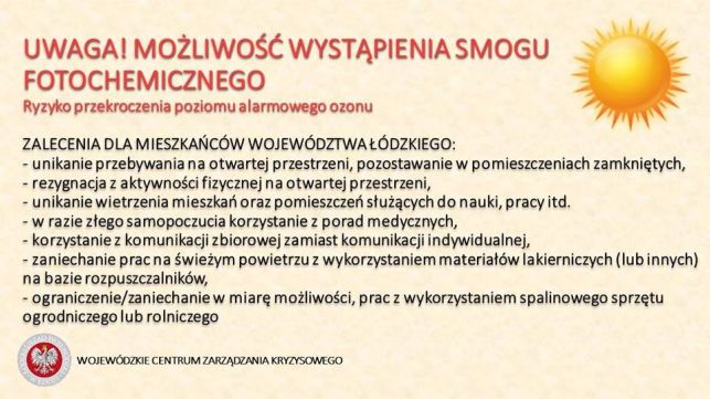 Centrum Zarządzania Kryzysowego ostrzega przed smogiem fotochemicznym w naszym województwie | 1 / 21 / 2 | 2 / 22 / 2