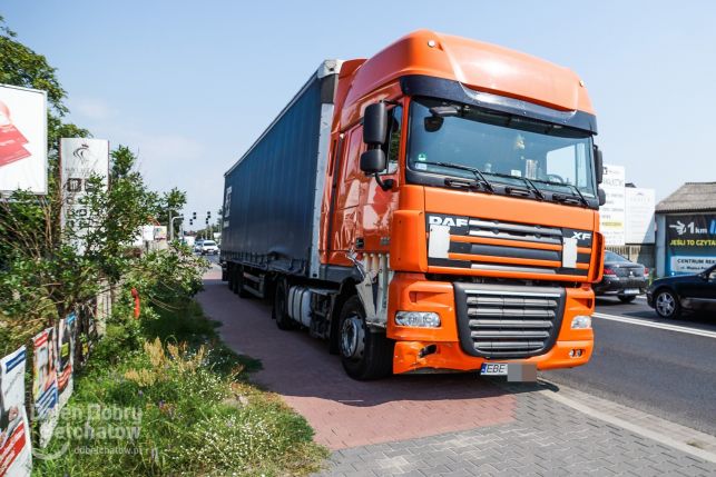 Ze wstępnych relacji świadków wynika, że jadący od strony Bełchatowa w kierunku elektrowni samochód ciężarowy przygotowywał się do skrętu w ul. Zamoście, wychylając się na lewy pas, aby zmieścić się w zakręcie. Bus poruszający się za nim, jadąc w tym samym kierunku, nie zrozumiał zamysłu kierującego TIRem. Doszło do zderzenia, w wyniku którego bus uderzył w przydrożną barierę. Kierowcy wyszli ze zdarzenia bez szwanku, natomiast na całej drodze znajdował się bus czekający na lawetę. Na miejscu zdarzenia policja kierowała ruchem.