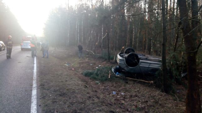 Dachowanie przy wyprzedzaniu. 22-latek w szpitalu