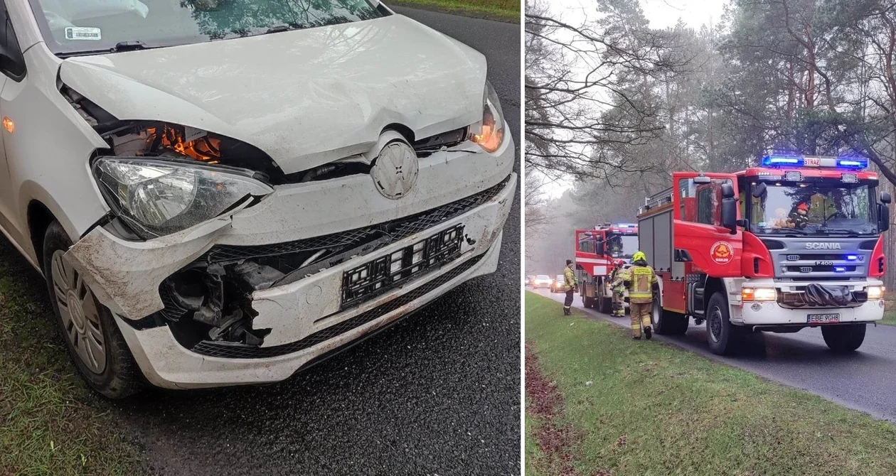 Do potrącenia doszło w środę, 12 kwietnia, wczesnym rankiem około godz. 7.35 na drodze wojewódzkiej 485 w miejscowości Podstoła (gmina Drużbice). Strażacy przyjęli zgłoszenie o dymie wydobywającym się z rozbitej osobówki.