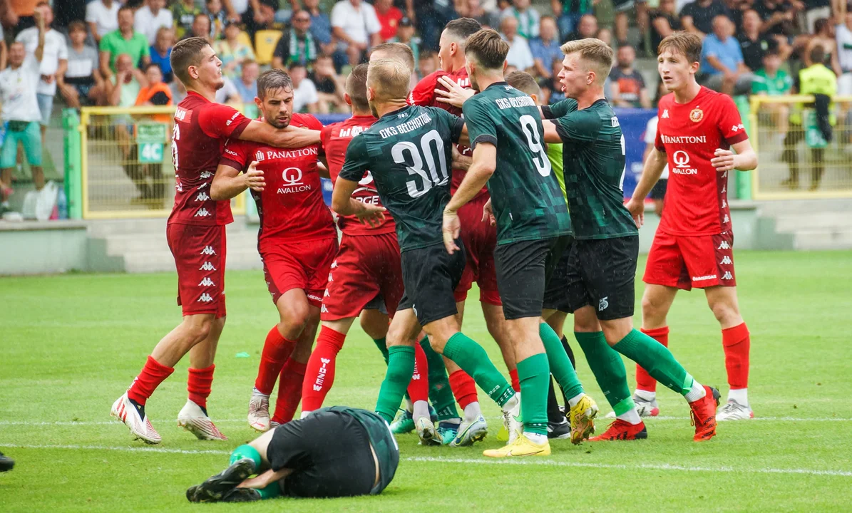 Żółte kartki: Mariusz Holik, Artur Golański, Leonid Otczenaszenko, Jarosław Trzeboński, Sebastian Ochocki - Łukasz Plichta, Damian Pokorski, Maciej Kazimierowicz, Kacper TrenknerGKS Bełchatów: Leonid Otczenaszenko – Sebastian Ochocki (Szymon Sarnik 46’), Mariusz Holik, Jarosław Trzeboński, Mateusz Szymorek – Miłosz Nowak (Damian Michalak 80’) – Łukasz Wroński, Bartosz Bujalski (Bartłomiej Bartosiak 46’), Artur Golański, Damian Warnecki (Tomasz Bąkowicz 73’) – Przemysław Zdybowicz (Bartłomiej Trzeboński 65’)