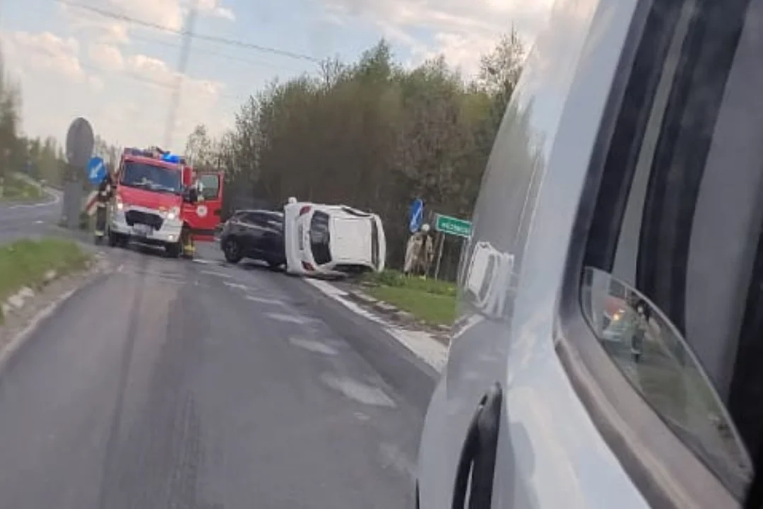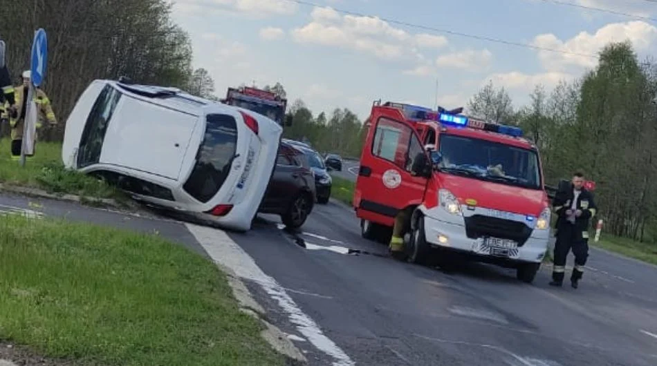 Chwilę przed godziną 14:00 w piątek (5 maja) na Drodze Krajowej nr 74 doszło do zderzenia dwóch samochodów osobowych. Jeden z pojazdów przewrócił się i zatrzymał na boku drogi. Na miejsce wezwano służby.