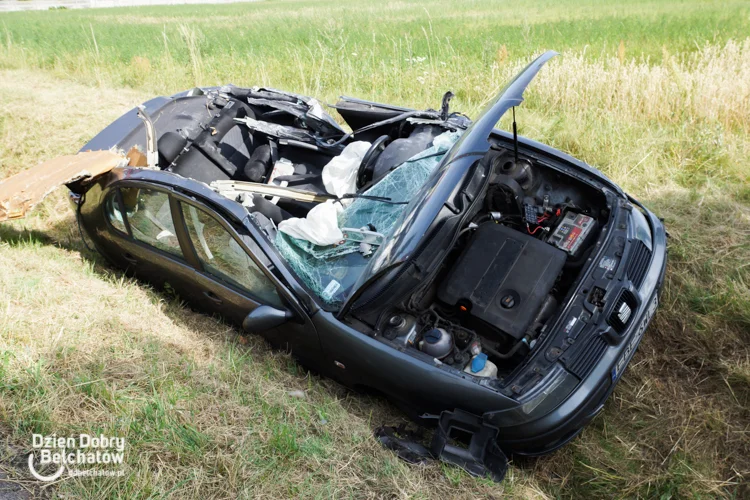 Niestety z nieznanych przyczyn kierującemu seatem mieszkańcowi Bełchatowa nie udało się wyhamować swojego auta, w wyniku czego doszło do zderzenia z obydwoma pojazdami. W ostatniej chwili 33-latek próbował skręcić w prawo, przez co auto wylądowało w rowie. Jednocześnie impet uderzenia ściął dach auta.