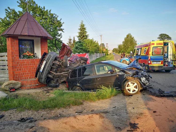 W niedzielny wieczór 52-letni kierowca opla astra jadący drogą z Łobudzic do Kociszewa nie ustąpił pierwszeństwa na skrzyżowaniu w miejscowości Bujny Szlacheckie. Przez to zderzył się on z volswagenem touranem za kierownicą którego siedział 33-letni mężczyzna. Kiedy samochód uderzył w bok astry, oba auta zostały wyrzucone z drogi i uderzyły w stojącą przy jezdni kapliczkę.