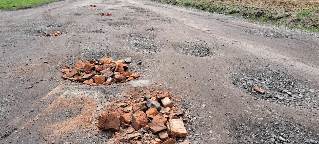 Część dziur na ulicy Pabianickiej wypełniono…gruzem, a dokładniej fragmentami cegieł. Internauci, widząc to, ochoczo zaczęli komentować post wstawiony na jednej z grup zrzeszających mieszkańców Zelowa.