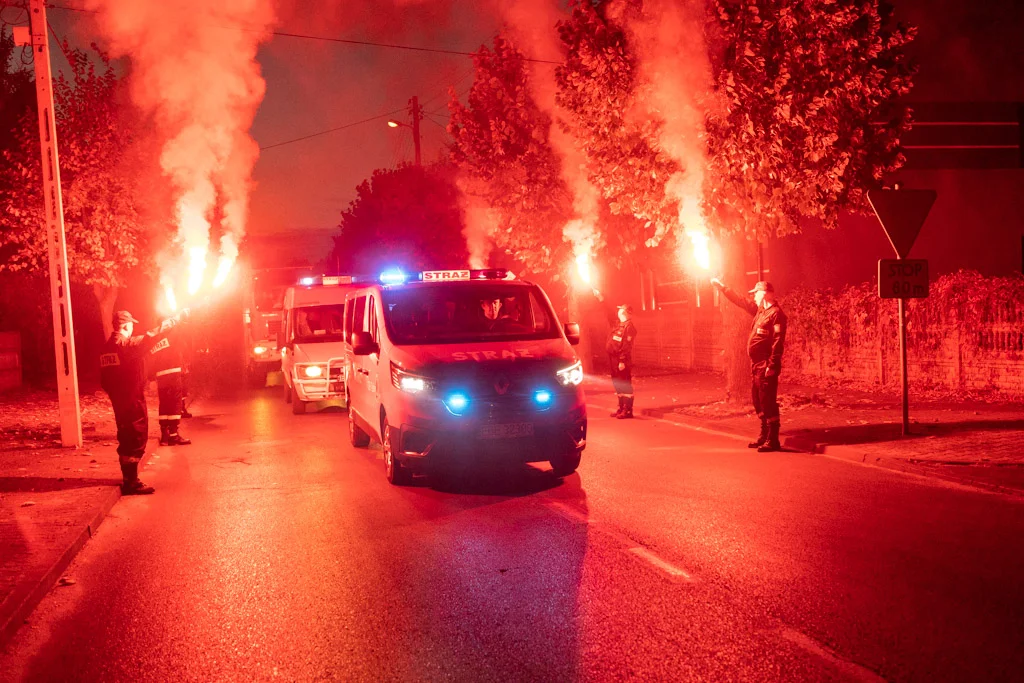 Oficjalnie auto przekazano strażakom w piątek, 14 października. Podczas uroczystości powitania nowego sprzętu, odbył się krótki przejazd ulicami miasta, któremu towarzyszyły dźwięki syren oraz czerwone race odpalone przez strażaków.