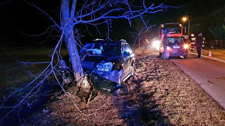 Do wypadku w Łobudzicach doszło w niedzielę (27 lutego) ok. godz. 18. Samochód marki Hyundai uderzył z impetem w przydrożne drzewo. Na miejsce wezwano policję, straż pożarną i karetkę pogotowia.