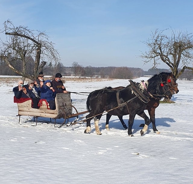 Gospodynie z Niedyszyny w gminie Bełchatów wykorzystały piękną pogodę do spotkania na świeżym powietrzu. Chętni mogli przejechać się saniami, a później spotkać się przy ognisku. Były pieczone kiełbaski, bigos z kociołka, chleb ze swojskim smalcem i kiszonym ogórkiem oraz ciepłe pączki.