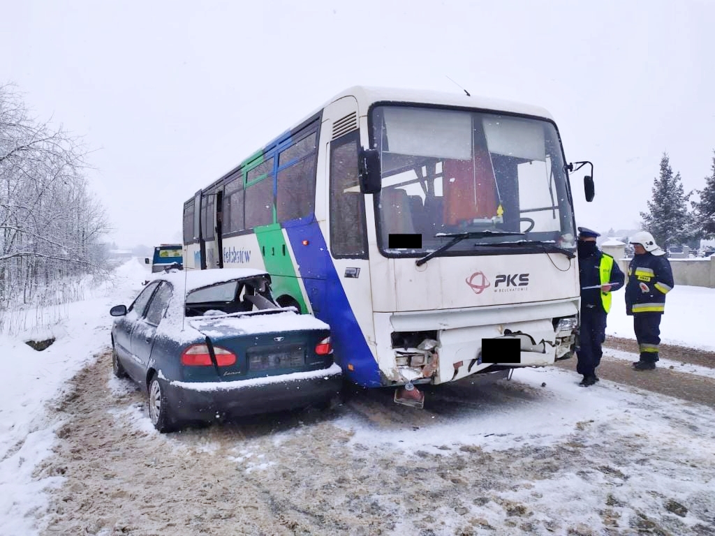 Do wypadku doszło wczesnym rankiem ok. godz. 7 na drodze w Chabielicach, gdzie zderzyły się daewoo lanos z autobusem renault. Z informacji uzyskanych od dyżurnego bełchatowskiej straży pożarnej wynika, że najprawdopodobniej kierowca osobówki, chcąc uniknąć potrącenia przebiegającego przez drogę zwierzęcia, wpadł w poślizg i zjechał na przeciwległy pas. W rezultacie doszło do zderzenia z nadjeżdżającym z naprzeciwka autobusem. Na miejsce wezwano karetkę pogotowia, która zabrała do szpitala 43-letniego mieszkańca powiatu radomszczańskiego.