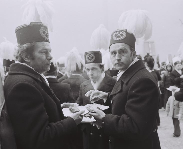 Podczas pierwszych pochodów barbórkowych w Bełchatowie trudno było jednak dostrzec tłumy górników ubranych w mundury i czapki z pióropuszem (tzw. górnicze czako). Pojedynczy pracownicy wystrojeni w górniczy strój wzbudzali niemałą sensację. Mundur i górnicza szpada oznaczały prestiż i poważanie. Z relacji najstarszych pracowników wynika, że w początkowych latach, pierwsi bełchatowscy górnicy chodzili tak ubrani… do pracy.