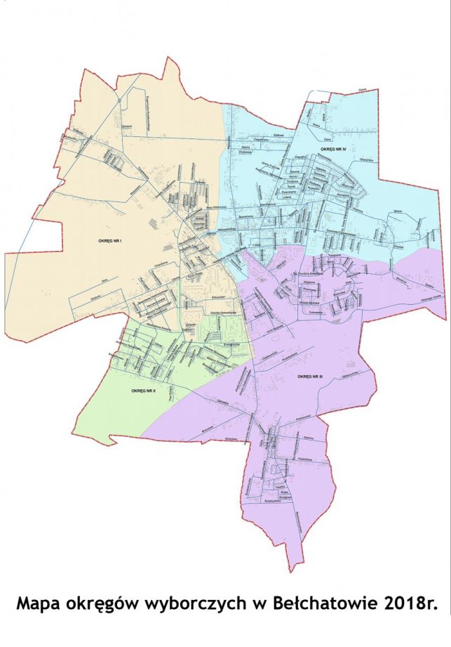 Nowe prawo wyborcze mówi, że miasta liczące więcej niż 20 tys. mieszkańców muszą wprowadzić wielomandatowe okręgi wyborcze. Bełchatów będzie podzielony na cztery. Do okręgu 1 będą należeć m.in. mieszkańcy ulic: Włókniarzy, Czaplinieckiej, Lipowej. Drugi przypisany jest m.in. do al. Wyszyńskiego, Jana Pawła II, ul. Norwida, trzeci m.in. do os. Okrzei, Słonecznego, ul. Budryka. Czwarty obejmować będzie m.in. os. Budowlanych, Żołnierzy POW, Wolności. Szczegółowy podział można zobaczyć TUTAJ. W przypadku 1, 3 i 4 okręgu bełchatowianie będą wybierać sześciu radnych, zaś w 2 pięciu.