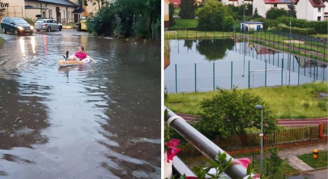 Jedni pływali na pontonie, inni ratowali zalane piwnice i samochody. Bełchatowianie pokazują zdjęcia z wczorajszej ulewy [FOTO]