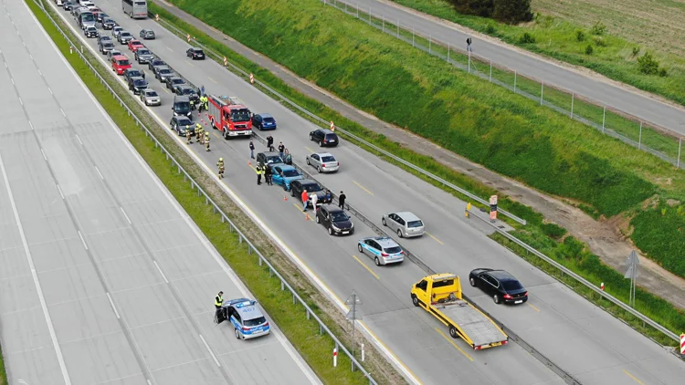 Do karambolu na 377. kilometrze autostrady A1 między Radomskiem i Kamieńskiem doszło w niedzielę 22 maja ok. godziny 16:30. W zderzeniu na jezdni w stronę Katowic udział brało osiem samochodów osobowych.