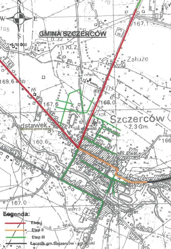 Równocześnie prowadzone mają być prace nad trzema gazociągami – już we wrześniu 2021 roku zbudowany zostanie pierwszy z nich o długości 3000 metrów, na odcinku od ul. Piłsudskiego do ul. Łąskiej. Kolejny powstanie na odcinku drogi wojewódzkiej 480, która łączy gminę Szczerców z Ruścem ma być gotowy w marcu 2022 roku, jego długość to 7740 metrów. Ostatni z gazociągów połączy gminę Szczerców z gminą Kluki, prace mają zakończyć się w kwietniu 2022 roku – jego planowana długość to 11 kilometrów.