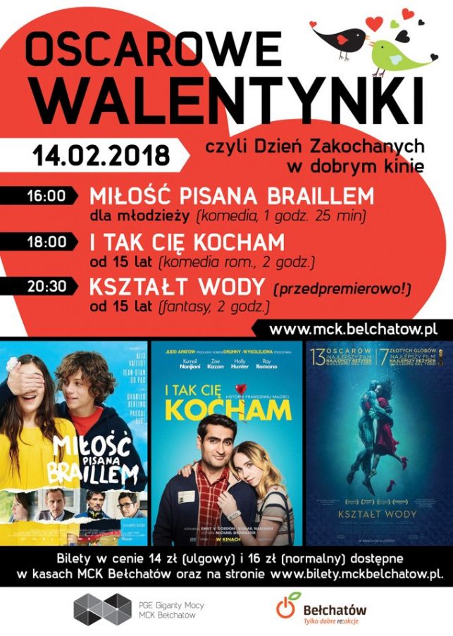 Miejskie Centrum Kultury w Bełchatowie zaprasza do kina KULTURA na "Oscarowe Walentynki, czyli Dzień Zakochanych w dobrym kinie"! 14 lutego, podczas walentynkowych seansów, zobaczymy trzy rewelacyjne filmy, w których rządzić będzie... miłość!