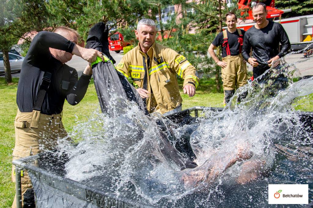 Po uroczystości na placu przed siedzibą strażaków, później przyszła pora na bardziej nieoficjalną część. Koledzy przygotowali zimną kąpiel w basenie strażackim dla wyróżnionych.