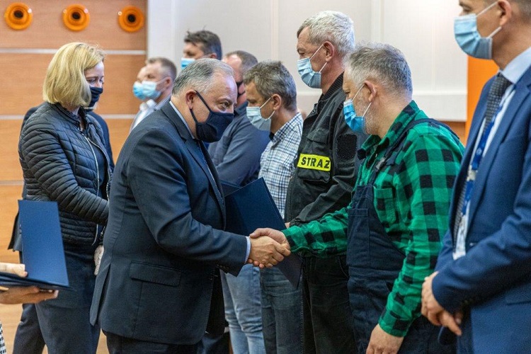 Prezes PGE - Wojciech Dąbrowski przyjechał do Bełchatowa, aby podziękować pracownikom elektrowni za szybkie przywrócenie do systemu energetycznego dziesięciu wyłącoznych bloków energetycznych. Z powodu obostrzeń i reżimu sanitarnego z szefem koncernu spotkała się tylko delegacja załogi, bo przy ponownym uruchamianiu bloków pracowało w sumie kilkadziesiąt osób.
