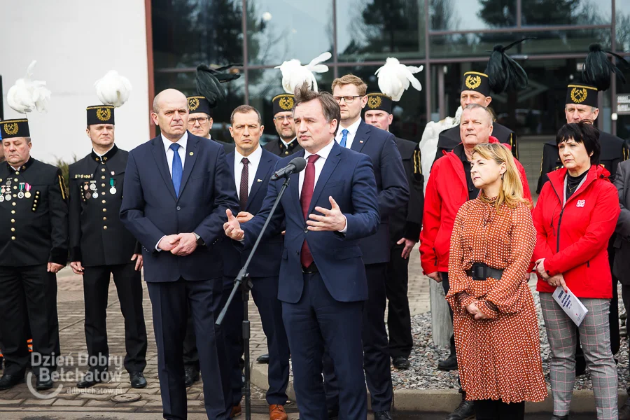 Zbigniew Ziobro podczas konferencji przed biurowcem KWB Bełchatów przypomniał, że węgiel daje Polsce niezależność energetyczną i najtańszy prąd. Dodał, że mitem jest stwierdzenie, że energia elektryczna z wiatraków czy fotowoltaiki jest tańsza niż prąd z węgla.