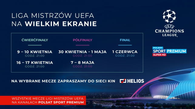 Zapraszamy na transmisje najbardziej prestiżowych rozgrywek klubowych na świecie. UEFA Champions League po raz kolejny zagości na ekranach kin Helios.
