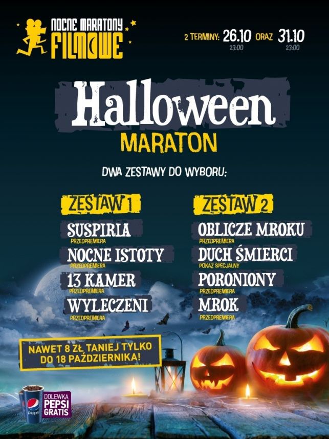 Nocne Maratony Filmowe Helios jak co roku stawiają przed Fanami horrorów piekielnie straszny dylemat. Do wyboru mamy dwie noce i dwa zestawy filmów, a w nich aż 8 przerażających horrorów! 26 i 31 października, Maratończycy mogą wybierać spośród specjalnie wyselekcjonowanych na tę okazję horrorów.