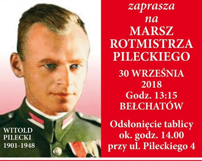 Uroczystość odbędzie się w najbliższą niedzielę, 30 września. O godzinie 12:00 zostanie odprawiona Msza św. w intencji Polskiego Państwa Podziemnego i Rotmistrza Pileckiego. O godzinie 13:15 początek marszu spod Kościoła Narodzenia NMP w Bełchatowie przy ul. Kościuszki 2. Następnie uczestnicy przejdą ulicami: Rotmistrza Pileckiego, 1 Maja, Dąbrowskiego, Plac Wolności, L. i M. Kaczyńskich.