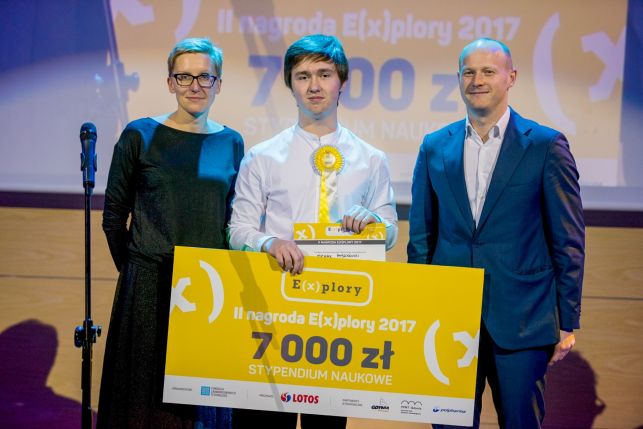 Teraz słów kilka o samym konkursie, bo to wyjątkowe na skalę krajową prestiżowe przedsięwzięcie dla młodych naukowców w przedziale wiekowym 13-20 lat. E(x)plory daje możliwość skonfrontowania pomysłów młodych młodych ludzi z przedstawicielami świata nauki oraz zdobycia doświadczenia w prezentowaniu autorskich projektów naukowo-badawczych. Michał Paszkowski, w trzech konkursowych etapach pokonał kilkuset rywali. Teraz może cieszyć się ze stypendium w wysokości 7 tysięcy złotych. Dla Michała jednak ważniejsza jest przepustka na największy światowy konkurs Intel ISEF, który odbywa się w Stanach Zjednoczonych od 1958 roku. W tym konkursie bierze udział ponad 1600 uczniów, 1000 projektów z 70 krajów. Michał - zgodnie z regulaminem konkursu - będzie prezentował się ze swoim zwycięskim projektem.