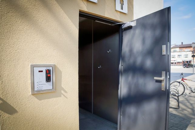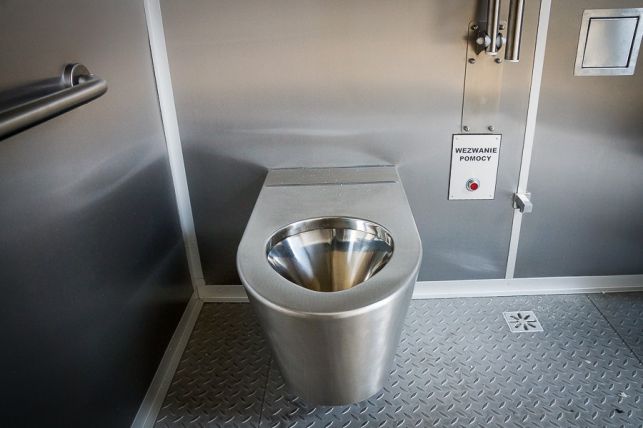 Miejski szalet za ponad 200 tys. złotych już stoi na pl. Narutowicza. Będzie zamknięty, dopóki radni nie ustalą regulaminu [FOTO]