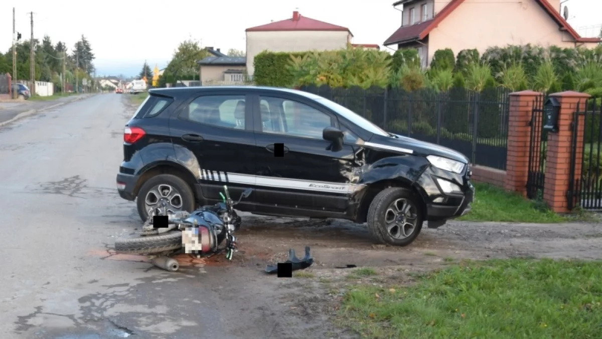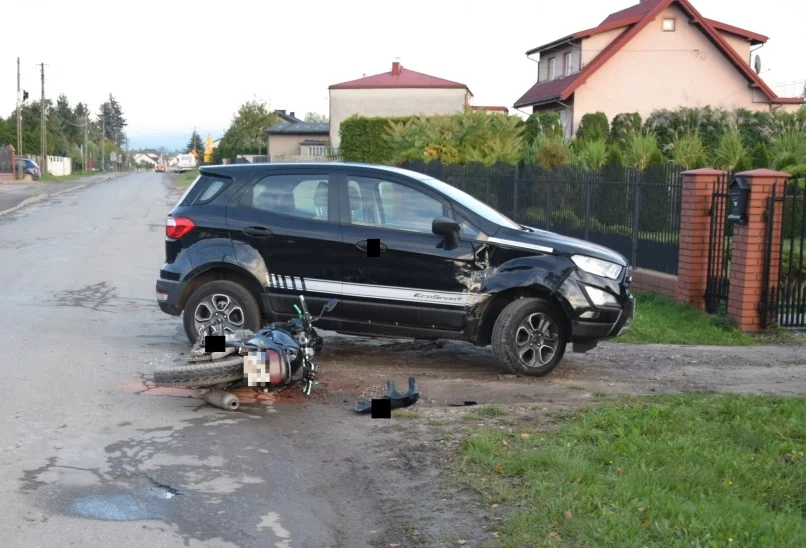 Do zdarzenia doszło w środę, 9 października, około godziny 16.20 w miejscowości Domiechowice. Z ustaleń bełchatowskiej policji wynika, że 55-latka kierująca fordem, skręcając w lewo w drogę wjazdową do posesji, nie zachowała należytej ostrożności i nie ustąpiła pierwszeństwa przejazdu motocykliście, który jechał z przeciwnego kierunku.