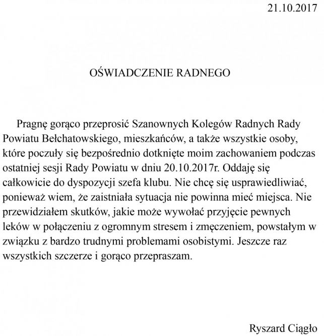 Nie pijany, a chory i zmęczony? Radny Ryszard Ciągło wydał oświadczenie | 1 / 31 / 3 | 2 / 32 / 3 | 3 / 33 / 3