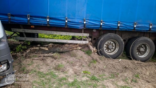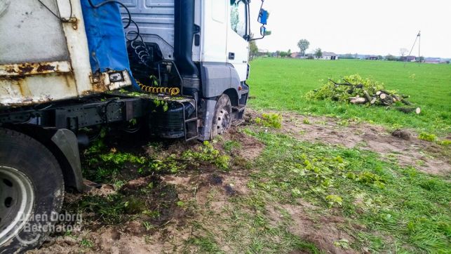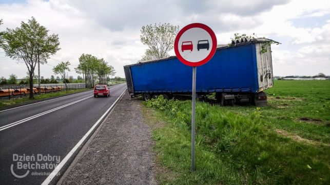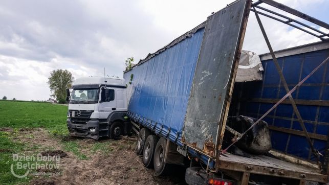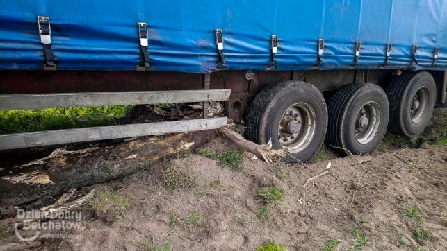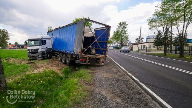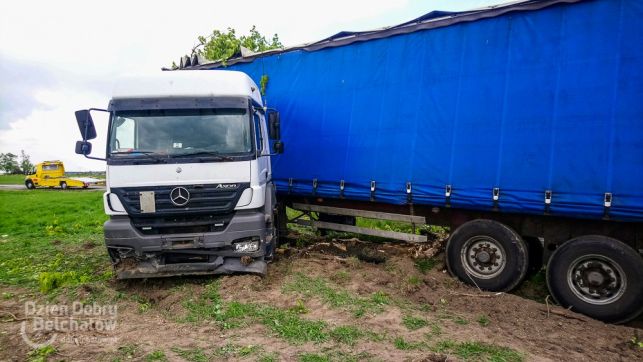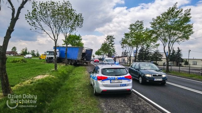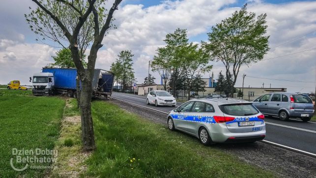 Niebezpiecznie pod Bełchatowem. TIR ściął drzewo, żeby nie staranować osobówki [FOTO]