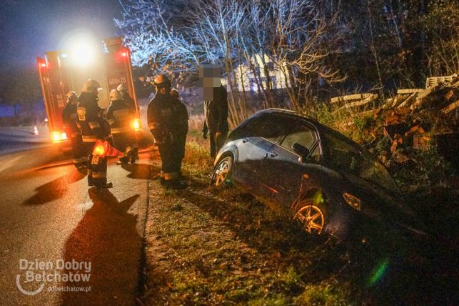 Niebezpiecznie w Myszakach. Auto w rowie, kobieta w szpitalu [FOTO]