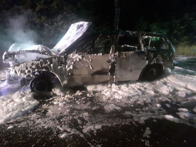 Wezwanie dotyczące płonącej osobówki dyspozytor PSP Bełchatów otrzymał w piątek, 28 sierpnia około godziny 23:30. Po udaniu się na miejsce, do miejscowości Marszywiec, strażacy ugasili pojazd podając 1 prąd piany ciężkiej oraz 1 prąd wody. Walka z żywiołem trwała ponad 2 godziny, volkswagen passat doszczętnie spłonął.