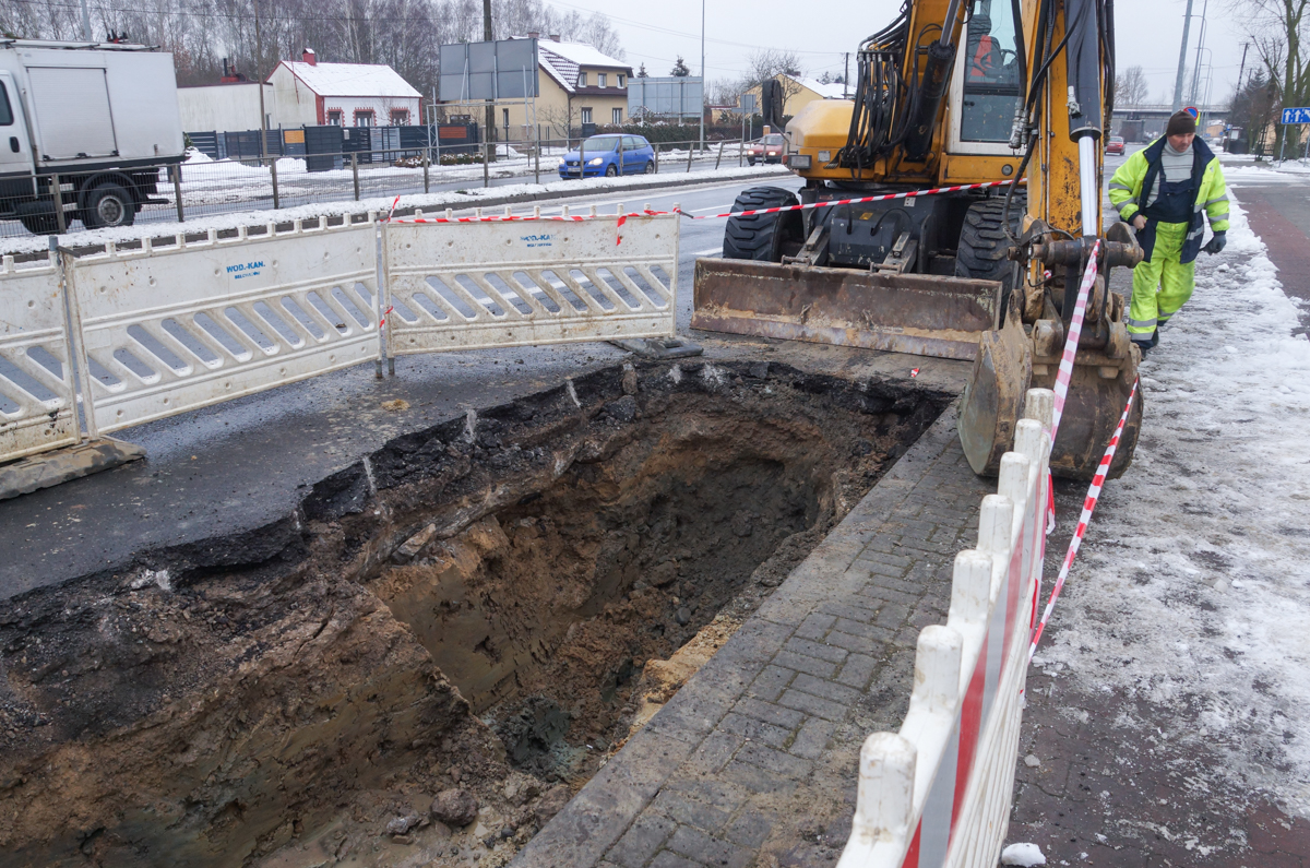 - Wpływ na pęknięcia rur mają drgania gruntu przy zmianie temperatur. Prace już trwają, znaleźliśmy miejsce awarii – mówi Andrzej Karwacki, kierownik działu technicznego w spółce Wod-Kan.