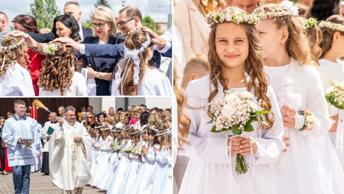Dzieci w towarzystwie swoich rodziców i bliskich ustawiły się przed świątynią. Uczniowie pięknie prezentowali się w białych strojach. U dziewczynek obowiązkowym elementem były również kwiatowe wianki. Z kolei chłopcy stroje uzupełnili białymi rękawiczkami.Już po chwili zebrani zostali powitani przez księdza, który skropił maluchy wodą święconą. Następnie rodzice pobłogosławili swoje dzieci, po czym wszyscy udali się do kościoła, gdzie odprawiona została msza święta, podczas której maluchy przyjęły sakrament. W galerii poniżej artykułu znajduje się fotorelacja z tego wydarzenia.
