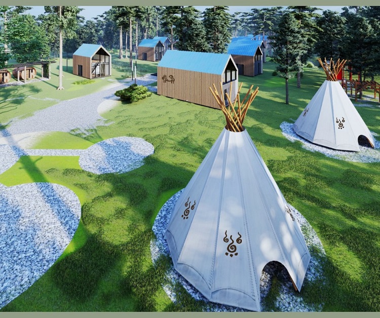 Jak będzie wyglądał planowany ośrodek wypoczynkowy? Na terenach kompleksu powstanie 10 domków wypoczynkowych, a także recepcja z szatniami i toaletami. Zaplanowane są też strefy gier, relaksu, mentalnej kreatywności oraz ruchu, które mają mieścić się w czterech budynkach.