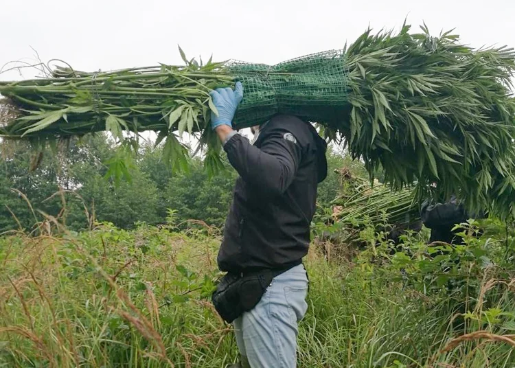 Policjanci odnaleźli nielegalną plantację podczas przeszukiwania lasu w miejscu, gdzie według ich ustaleń miały być uprawiane konopie indyjskie. Znajdowała się ona na bagnistym terenie pomiędzy wysokimi trzcinami, gdzie na polu pomiędzy lasami rosły narkotyczne krzaki.