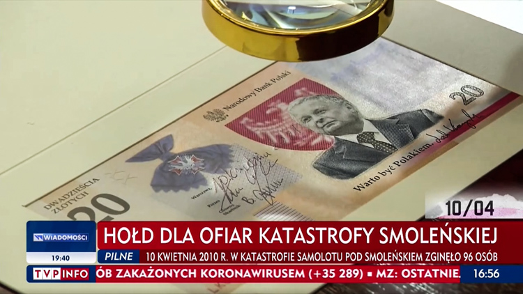 - W 11. rocznicę tragedii smoleńskiej podpisałem banknot kolekcjonerski, poświęcony śp. Lechowi Kaczyńskiemu, prezydentowi Rzeczpospolitej Polskiej, który zginął w tragicznych okolicznościach w Smoleńsku — powiedział Adam Glapiński.
