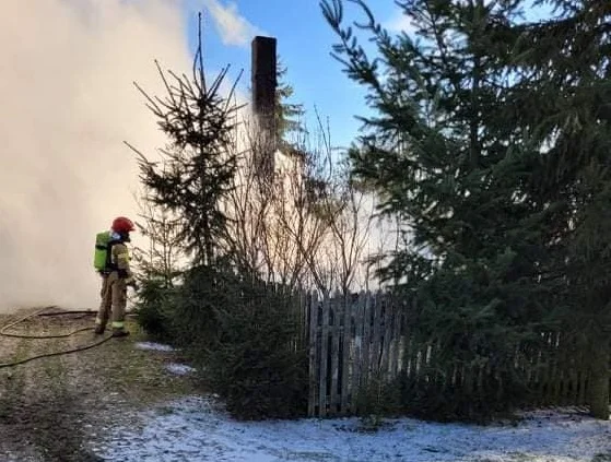 Pożar koło Bełchatowa, budynek doszczętnie spłonął [FOTO]