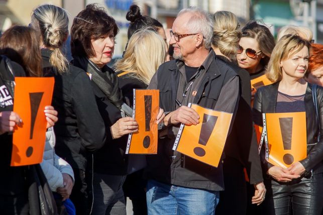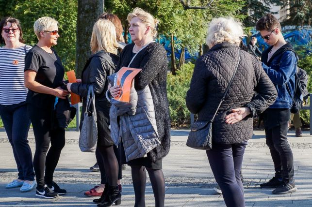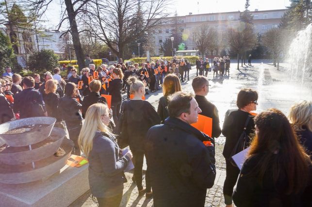 Protest w centrum Bełchatowa. Ponad setka osób wyraziła poparcie dla strajku nauczycieli [FOTO]