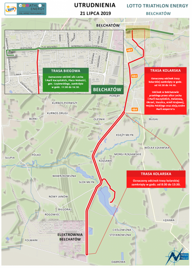 Przed nami duża sportowa impreza. Spore utrudnienia na drogach w Bełchatowie i okolicach. Zmiany w kursach MZK [MAPA] | 1 / 21 / 2 | 2 / 22 / 2