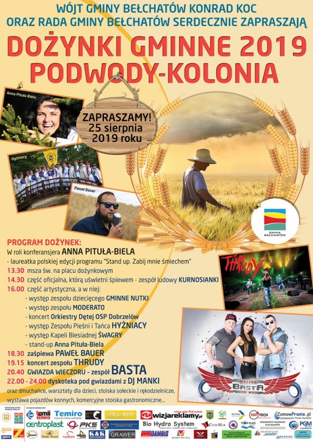 - Mimo trudnej sytuacji finansowej gminy udało nam się do Podwód Kolonii zaprosić takich wykonawców, których publiczność doskonale zna i którzy gwarantują dobrą zabawę - mówi Wójt Gminy Bełchatów, Konrad Koc. - Jednak nie zapominajmy, że ten dzień to przede wszystkim święto rolników. To ich pracę i trud chcemy tego dnia szczególnie docenić i uhonorować - podkreśla wójt.