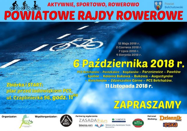 Powiatowe Centrum Sportu zaprasza na przedostatni Rajd Rowerowy, który odbędzie się w najbliższą sobotę 6 października , zbiórka przed lodowiskiem PCS-u o godz. 11