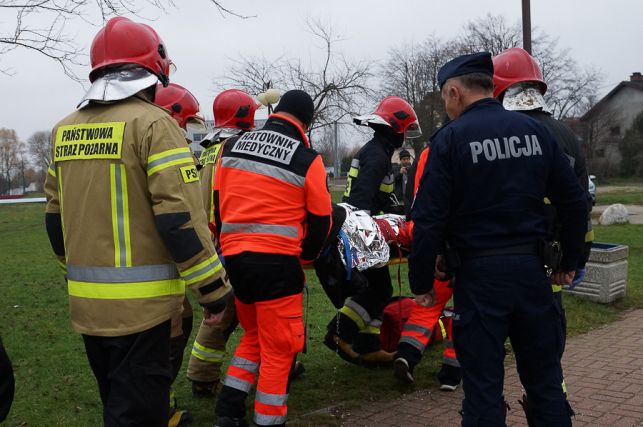 Mężczyzna doznał urazu głowy, możliwe też, że był wychłodzony, po wyłowieniu był jednak przytomny. Ratownicy ogrzali go kocem termicznym i przewieźli do szpitala.
