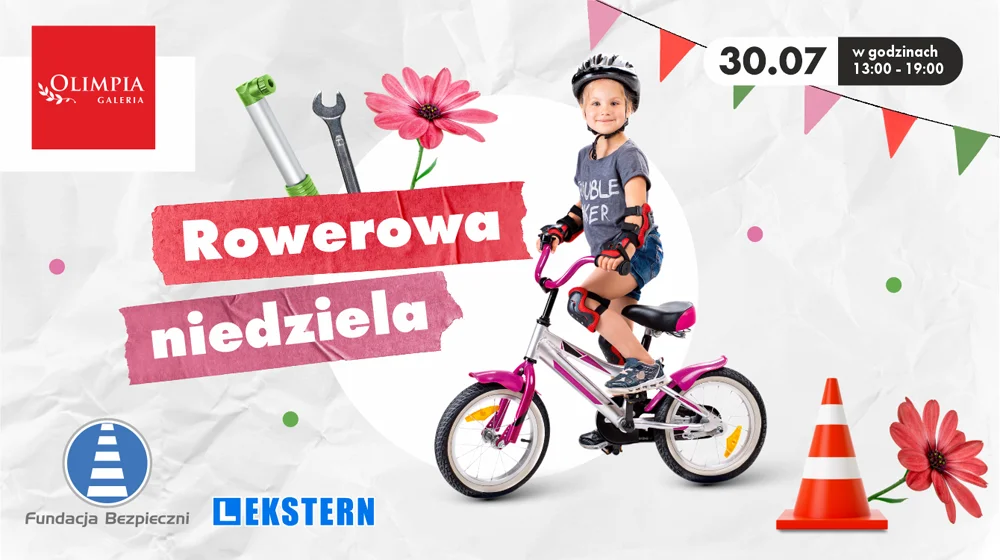 Galeria Olimpia wraz z Fundacją Bezpieczni zaprasza na „Rowerową niedzielę”. Podczas wydarzenia przygotowano wiele atrakcji. Zdecydowanie jednak głównym punktem programu będzie wszystko, to, co związane jest z jednośladami. Uczestnicy będą mogli skorzystać z serwisu rowerowego, a także zobaczyć wystawę zabytkowych rowerów.