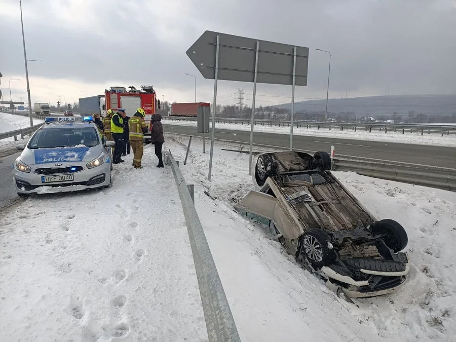 Do dachowania osobówki doszło we wtorek, 13 grudnia, tuż przed godz. 12, na zjeździe z autostrady A1 koło Kamieńska. Ze wstępnych ustaleń policji wynika, że kobieta siedząca za kółkiem skody fabia najprawdopodobniej straciła panowanie nad samochodem. Po chwili auto zjechało drogi i dachowało w przydrożnym rowie.