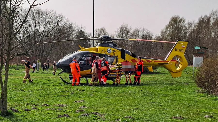 Wciąż niezbędna była jednak pomoc zespołu pogotowia, pod którego opiekę trafił chłopiec. Na miejscu pojawił się również śmigłowiec LPR, który wylądował w parku nieopodal placu zabaw „Statek”. Finalnie podjęto decyzję o przetransportowaniu chłopca helikopterem do szpitala.