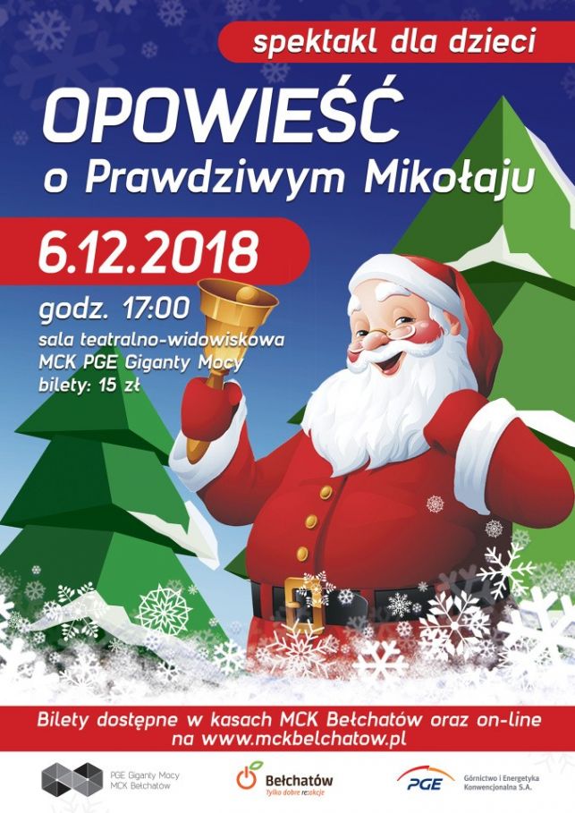 Miejskie Centrum Kultury w Bełchatowie zaprasza na spektakl mikołajkowy, pt. „Opowieść o prawdziwym Mikołaju”, który odbędzie się 6 grudnia o godzinie 17:00, w sali teatralno – widowiskowej MCK PGE Giganty Mocy.