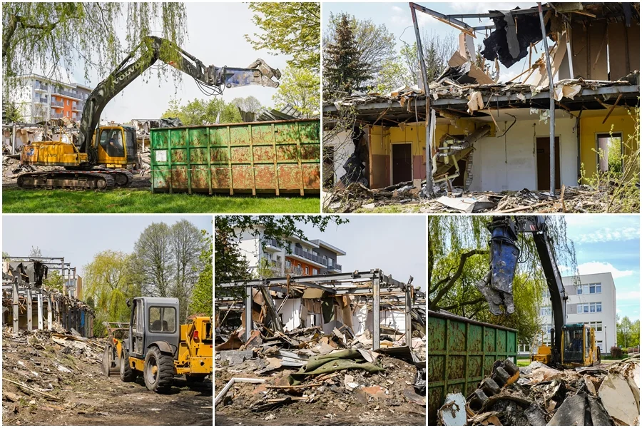 Prace potrwają do połowy miesiąca. Zdemontowane zostały okna, usunięty został też dach i część ścian działowych. Olbrzymie ilości gruzu składowane są w specjalnie przywiezionych kontenerach. Rozbiórka ma zakończyć się w połowie maja. Całość prac kosztować będzie 183 tys. zł.